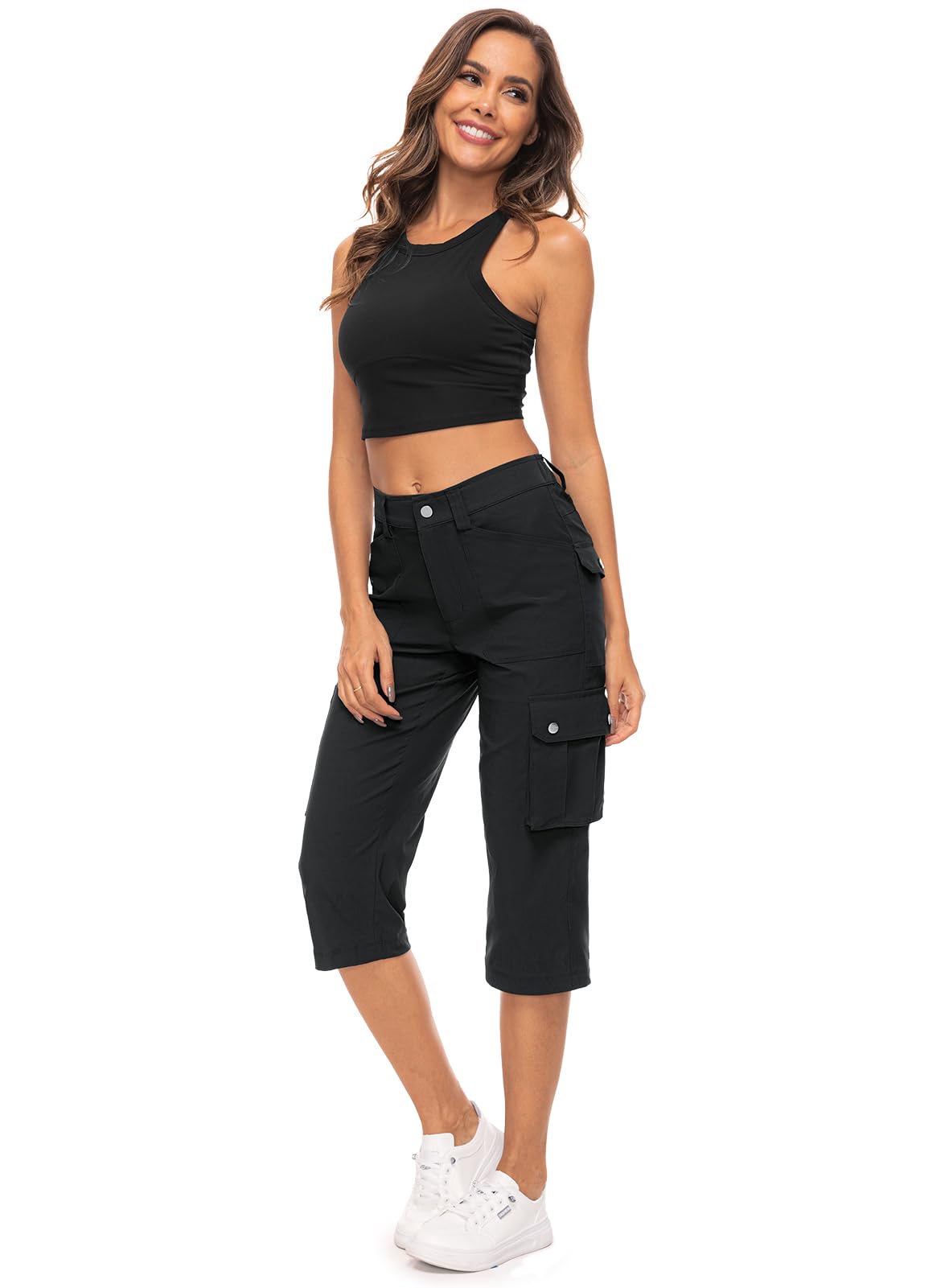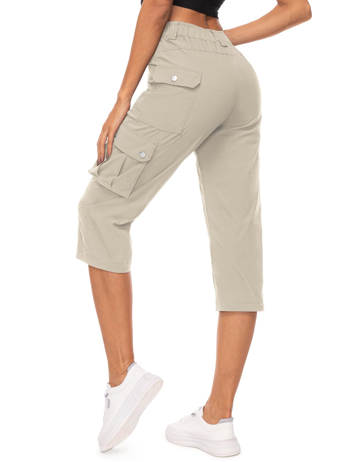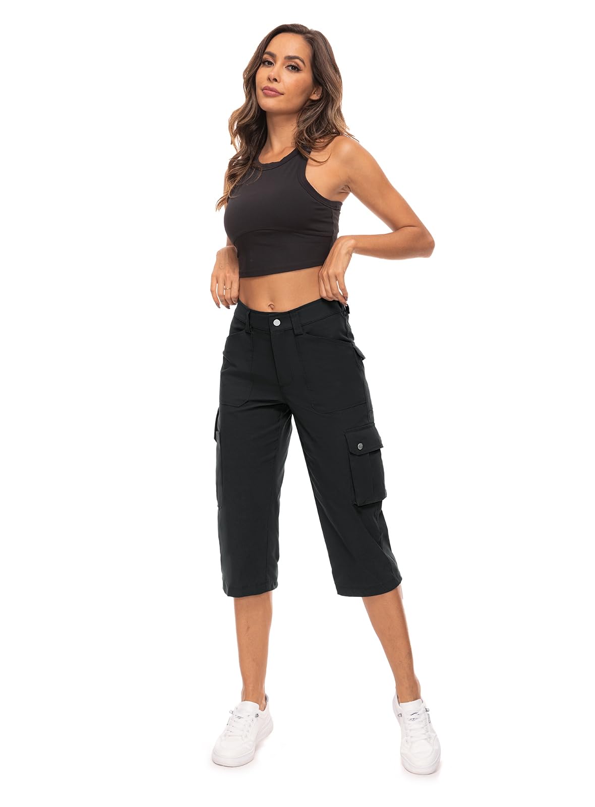 Women's Cargo Capris Pants High Waist Waterproof Hiking Casual Travel Summer Pants for Women with 6 Pockets