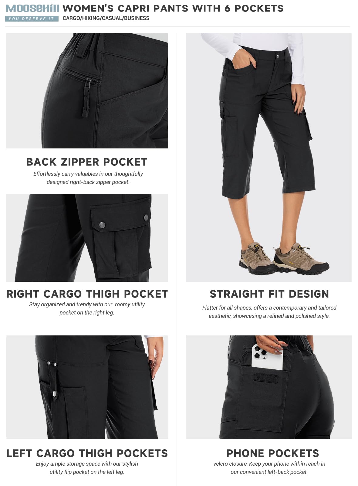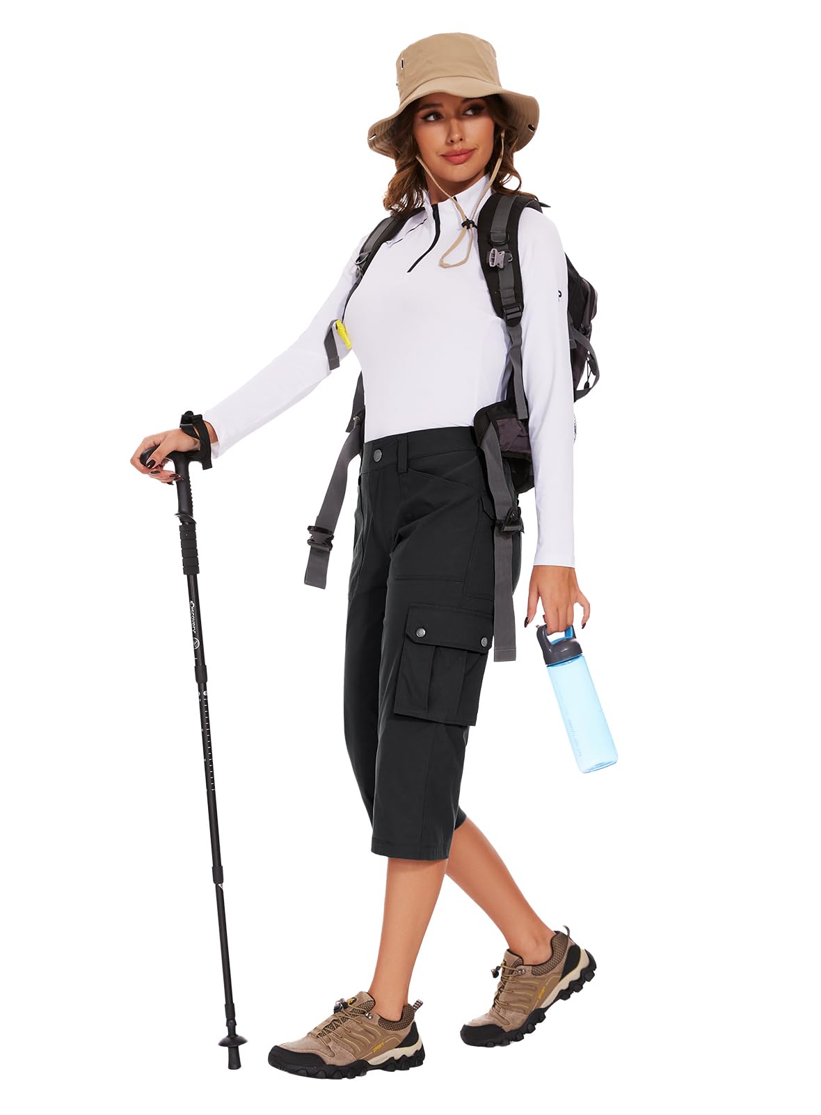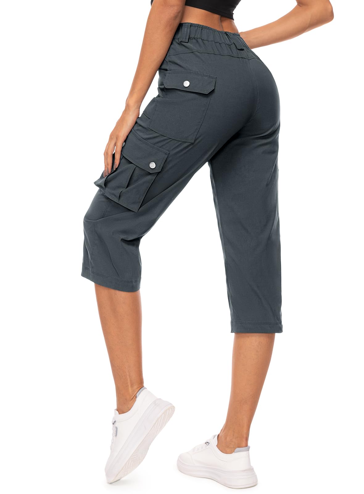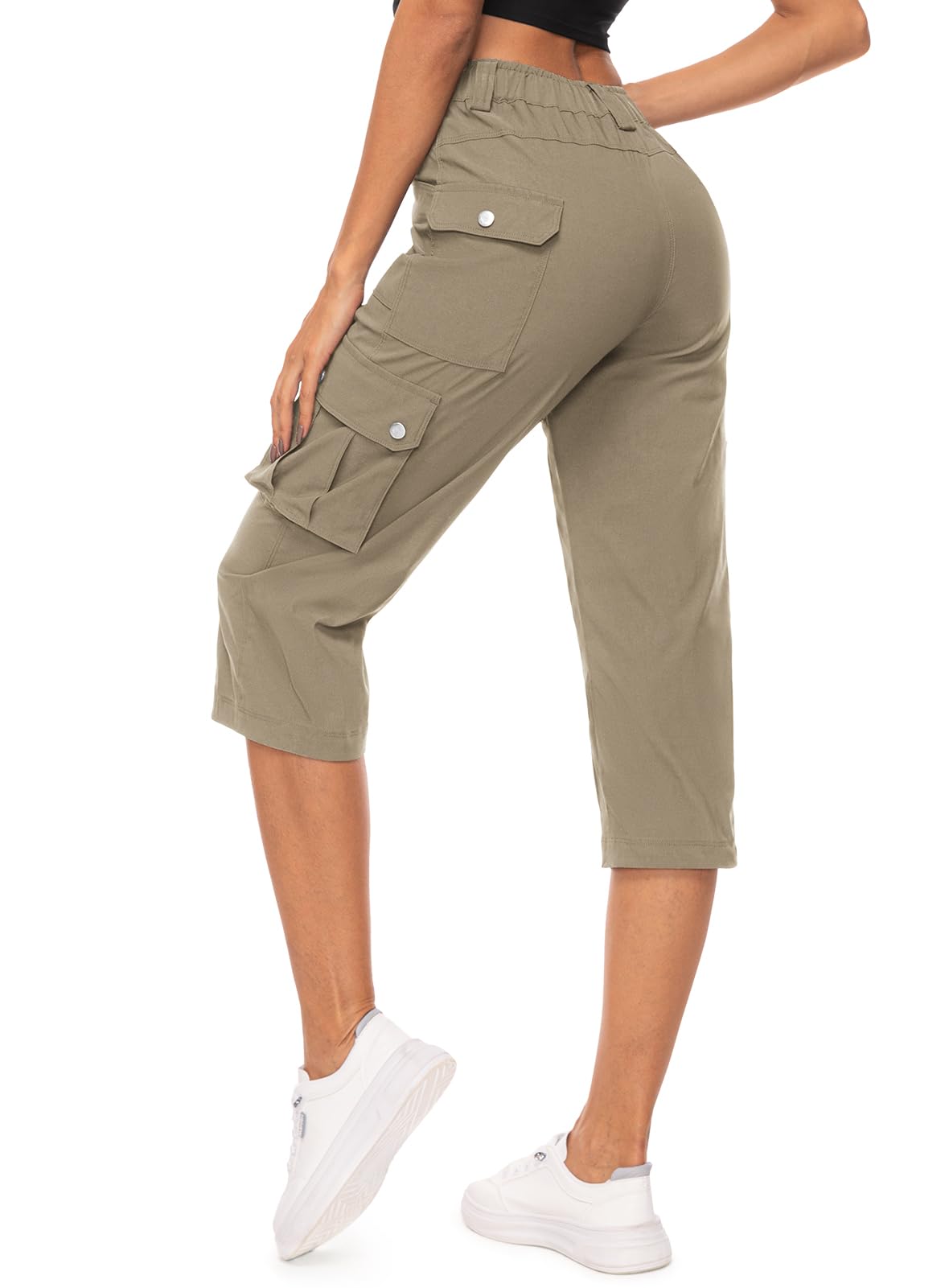Women's Cargo Capris Pants High Waist Waterproof Hiking Casual Travel Summer Pants for Women with 6 Pockets